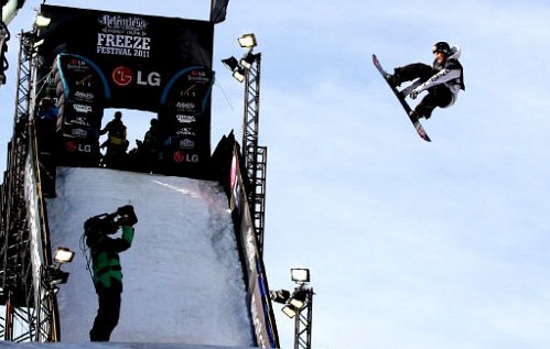 | LG전자는 지난해 10월 영국 런던에서 열린 스노보드 월드컵 대회에 타이틀 후원사로 참여했다. 스노보드 경기 출발대에 자리 잡은 LG전자 로고가 눈에 띈다. LG전자 제공 |