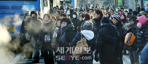 | 발만 동동 올 겨울 들어 가장 추운 날씨를 보인 2일 오전 지하철 1호선 서울역에서 전동차가 고장나면서 출근길 승객들이 큰 불편을 겪은 가운데 종로 일대가 버스와 택시를 타려는 시민들로 크게 붐비고 있다. 김범준 기자 |