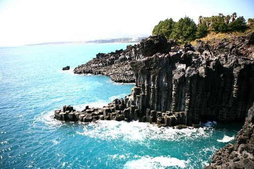 | 제주도 중문 대포동 해안가 주변의 독특한 현무암 지질인 주상절리. |