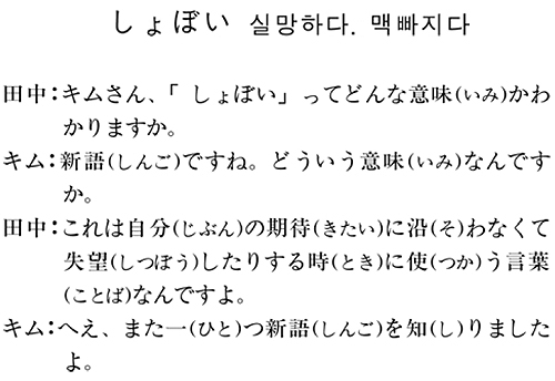 다나카: 이건 자신의 기대에 미치지 못해 실망하거나 할 때 사용하는 말이거든요.