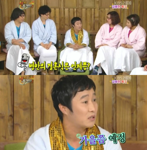 3월 22일 오후 방송한 KBS2 '해피투게더3'에 출연한 김병만은 결혼에 대해 묻는 MC들의 질문에 "혼인 신고만 하고 아직 결혼식을 올리지 않았다"고 말했다.