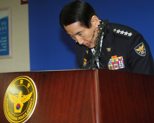 대국민 사과 하는 조현오 경찰청장 입력 : 2012-04-09 11:49:38 수정 : 2012-04-09 11:49:38 구글 네이버 유튜브 조현오 경찰청장이 9일 오전 서울 서대문구 미근동 경찰청사에서 수원 20대 여성 납치살인사건과 관련해 대국민 사과를 하고 사의를 표명하고 있다. <연합>연합> Copyright ⓒ 세계일보. 무단 전재 및 재배포 금지 연합 양혜선 관련 뉴스 靑, 조현오 사의 수용… 후임에 이강덕 유력