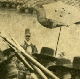 선글라스를 쓴 고종황제가 군인들의 호위를 받으며 어가에 앉아 있다. 연세 동은의학박물관 제공 |