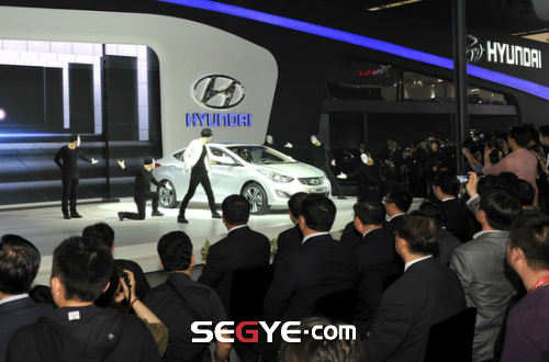 | ▶ 현대자동차는 23일 베이징 모터쇼에서 강력한 퍼포먼스와 함께 아반떼 MD를 출시했다. 사진=이다일 기자 |