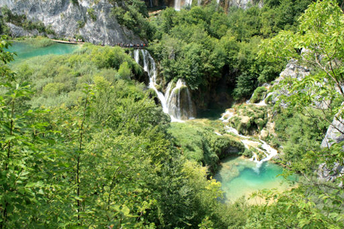 | 플리트비체 국립공원의 호수들. 호수 안의 다리들은 모두 나무로 만든 것이다. |