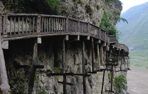 | 광위안잔도(廣元棧道)-명월협(明月峽). 쓰촨과 산시(陝西)를 잇는 교통의 요지인 광위안 북쪽에 있는 명월협에 세운 고잔도. |
