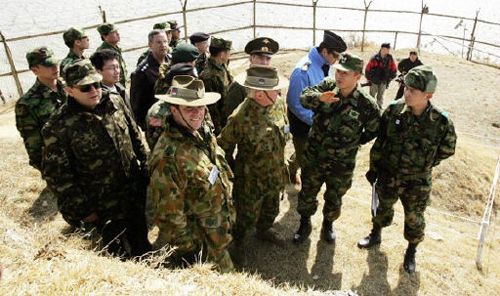 | 주한 외국 무관단이 경기도 파주 육군 백마부대 예하 전방부대를 방문해 부대를 둘러보고 있다. 세계일보 자료사진 |