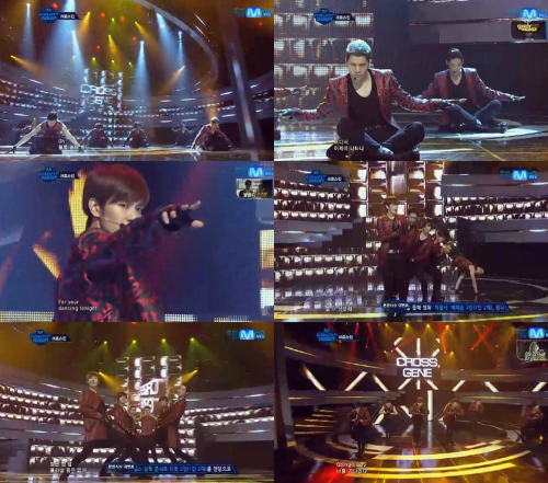 크로스진은 블랙과 레드가 조화를 이룬 강렬한 의상으로 등장해 카리스마 넘치면서도 신인답지 않은 세련된 무대매너로 시청자들의 눈과 귀를 사로잡았다.