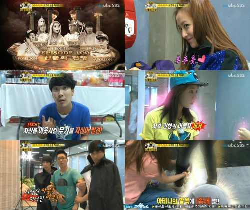 ‘런닝맨 ’의 100회 특집 ‘신들의 전쟁 ’이 시청자들의 눈길을 사로잡았다 .
