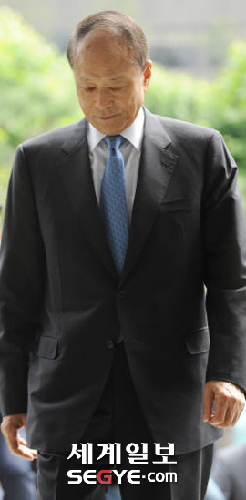 | 檢 앞에 선 영일대군 “가슴 아프다” 이명박 대통령의 친형인 이상득 전 새누리당 의원이 저축은행으로부터 거액을 수수한 혐의로 조사받기 위해 3일 침통한 표정으로 서울 서초구 대검찰청에 들어서고 있다. 이 전 의원은 ‘심경이 어떠냐’는 취재진의 질문에 “가슴이 아프다”고 짤막하게 답했다. 김범준 기자 |
