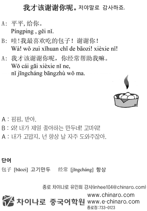 [生生 중국어 한마디] 저야말로 감사하죠. 입력 : 2012-07-08 18:05:15 수정 : 2012-07-08 18:05:15 구글 네이버 유튜브 Copyright ⓒ 세계일보. 무단 전재 및 재배포 금지