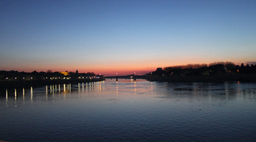 반 고흐의 ‘별이 빛나는 밤에’ 무대 론강. 반 고흐가 화구를 앞에 놓고 구도를 잡은 곳에서 본 풍경이다.