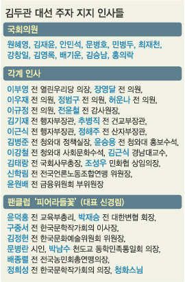 김 전 지사는 이날 출정식에서 서민·중산층 월 생계비를 50만원 줄여주고 통신비는 공공재인 전기·수도요금 처럼 대폭 낮추겠다고 공약했다. 또 논술고사 폐지, 외국어고·자립형사립고의 일반고 전환, 정유사에 대한 원가검증제 실시, 기초노령연금 2배 인상, 지방검사장 직선제 등을 약속했다. 취임 원년엔 남북정상회담을 추진하겠다고도 했다. 이와 함께 신규원전 건설 백지화와 제2, 제3의 개성공단 건설, 자치경찰제, 노인 틀니 전액 건강보험 지원 공약 등을 선보였다. 하나같이 인화성이 강한 민감한 사안들이다.