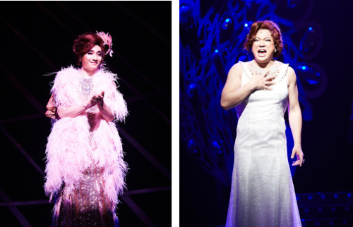 어떤 엘빈을 볼 것인가. 13만원의 표 값도 부담으로 작용한다. 작품의 질에 대한 평가 이상으로 관객들에게 중요한 사안이다. 김다현에 비해 입이 큰 엘빈 정성화는 시원스러운 가창과 코믹 연기가 일품이다. 아들의 결혼을 위해서 자신의 존재를 숨겨야 하는 마음을 노래하는 ‘I Am What I Am’ 씬의 설득력이 높다는 점이 긍정적 표를 던지게 한다. 반면 디테일한 연기 늬앙스를 맛보고 싶다면 김다현 배우가 적격이다. 정성화 배우가 대극장 무대에 맞는 과감한 액션을 선보인다면, 김다현은 관객들의 눈과 귀를 쉴 틈을 주지 않고 미세한 연기변화로 관객들을 쥐락펴락한다. 극중 자자가 무대에 오를 준비를 하며 부르는 ‘(A Little More) Mascara’ 넘버는 김다현에게 안성맞춤 옷 같아보였다.