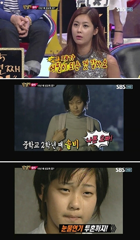 솔비는 15년 전 길거리에서 캐스팅돼 성교육 드라마 ‘용서받지 못할 죄’를 촬영했다. 자료화면으로 공개된 영상에서 그는 풋풋한 고등학생 모습으로 등장했다.
