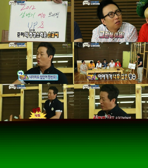 특히 정준하가 마련한 2012년 상반기 예능 프로그램 브리핑이 눈길을 끌었다. 그는 각양각색 오디션 프로그램의 열풍과 SBS '런닝맨'의 선전 등 다양한 주제에 대한 최근 예능의 동향을 전달했다.