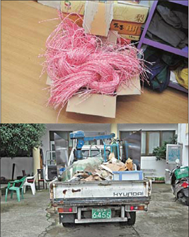 | 범인 김점덕씨가 한양 살해에 사용한 노끈(위)과 트럭. |