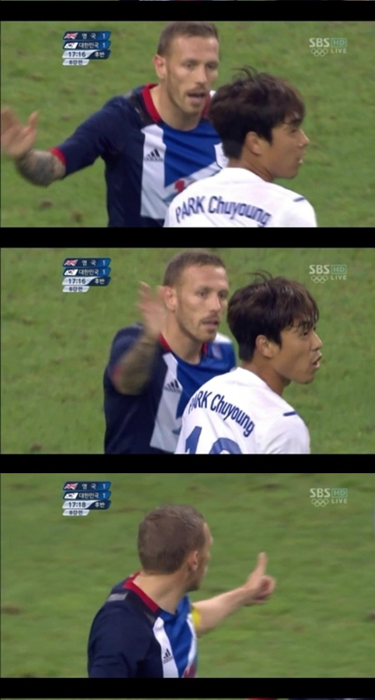 영국 올림픽 대표팀 주장 크레이그 벨라미(33·리버풀)가 대한민국 박주영 선수의 뒤통수를 때리는 장면이 화제가 되고 있다.