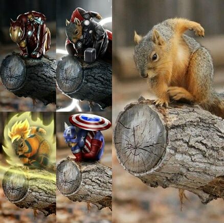 사진 속 다람쥐는 영화 ‘어벤져스’의 등장인물인 아이언맨, 캡틴아메리카, 토르 등을 패러디해 보는 이들의 웃음을 자아냈다. 이 사진은 한 네티즌이 합성해 만든 것으로 알려졌다.