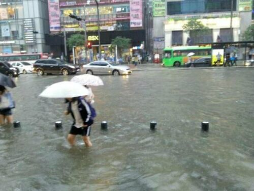 | ▶ 트위터 사용자 @monosaic가 올린 15일 오후 강남역 침수 상황. /사진=@monosaic |