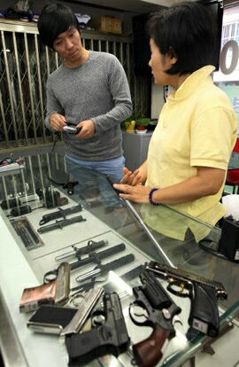 이에 직원은 상대적으로 값이 비싼 가스총을 내보이며 “크기가 아담해 여성들이 많이 찾는다”며 설명을 이어갔다.