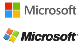 MS는 물결치는 모양의 빨강·초록·파랑·노랑 4색 깃발은 4색 정사각형 창문으로, 사명 글꼴은 기울어진 형태에서 정자체로, 글자 색은 검은색에서 짙은 회색으로 대체했다.