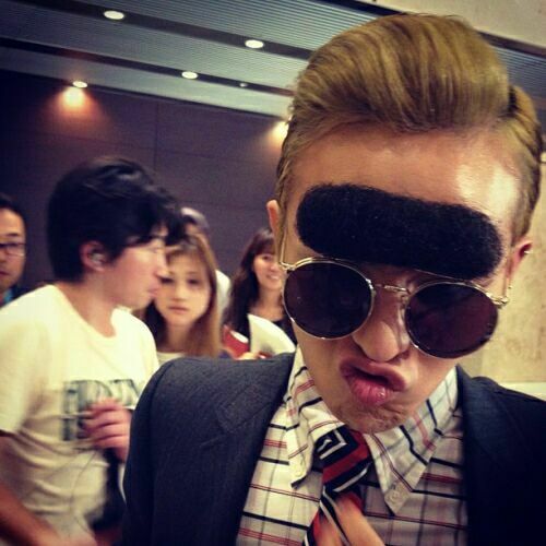 지드래곤은 지난 25일 자신의 트위터에 짙은 송충이 눈썹을 붙이고 찍은 사진을 게재했다. 해당 사진 속 지드래곤은 매끈하게 넘긴 금발머리에 두꺼운 일자 송충이 눈썹을 붙이고 선글라스를 착용하고 있다.