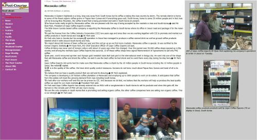 파푸아뉴기니 대표 일간지인 ‘포스트 쿠리어’(Post Courier)는 국내에서 파푸아뉴기니 커피를 공급하고 있는 (주)게포커피에 관한 기사를 전면에 걸쳐 대대적으로 보도했다. 이 신문의 편집국장인 Peter Korugl-Kumugl씨는 (주)게포커피본사가 있는 경기도 하남시를 방문 박상철 대표와 가진 인터뷰와 커피매장 등을 상세히 전달했다.