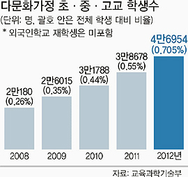 다문화 대안학교 관계자는 “다문화가정 학생들은 피부색이 다른 데다 한국말이 서툴다보니 다른 아이들의 놀림이 되거나 심지어 교사들로부터도 차별받을 때가 많다”면서 “다중언어 강사 및 다문화학생 특별반 확대 등 정부 지원을 더욱 늘려야 한다”고 말했다.