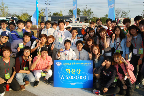 | 현대자동차그룹 주최로 열린 제11회 미래자동차 기술공모전 ‘자율주행자동차 경진대회’에서 한기대 참가팀이 혁신상을 수상해 부상으로 500만원의 상금을 받았다. |