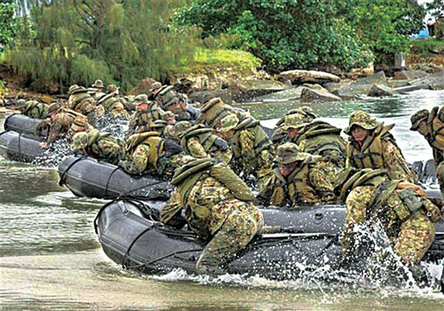 그러나 일본은 최근 주변국들과 섬 영유권을 놓고 다툼이 빚어지자 미 해병대와의 연합작전이라는 미명하에 은근슬쩍 해병대 운영에 나섰다. 일본 방위성은 지난 22일 이례적으로 언론에 미국령 괌 주변 섬들에서 벌어지고 있는 육상자위대와 미 해병대의 ‘도서방위 합동군사훈련’ 현장을 공개했다.