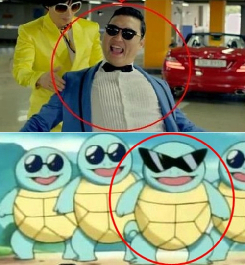 최근 인터넷 포털사이트 커뮤니티 게시판에는 ‘싸이 꼬부기 싱크로율’이라는 제목으로 싸이의 사진과 ‘포켓몬스터’의 꼬부기를 나란히 놓은 게시물이 공개됐다. 해당 이미지 속 싸이와 꼬부기는 통통한 몸매와 선글라스를 착용한 모습이 흡사해 웃음을 자아낸다.
