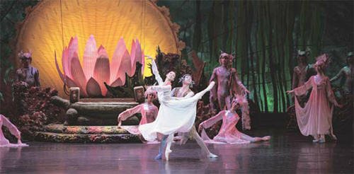 | 심청 역을 맡은 황혜민과 용왕자로 분한 정위가 용궁에서 화려한 2인무를 선보이고 있다. 유니버설발레단 제공 |
