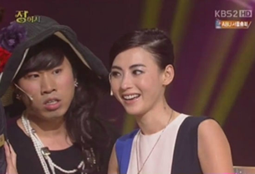 장백지는 14일 방송된 KBS 2TV '개그콘서트-정여사'에 깜짝 등장해 놀라움을 안겼다. 개그맨 송병철은 안마의자를 차지하려는 정태호에게 '유명 배우가 와도 줄수 없다'고 하자 장백지가 등장했다.