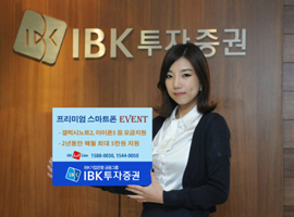 IBK투자증권은 갤럭시노트2 등 최신 스마트폰 단말기 할부금과 통신료를 지원하는 ‘프리미엄 스마트폰 이벤트’(사진)를 진행 중이다. 이번 행사는 연말까지 진행되며 대상 단말기는 갤럭시노트2, 아이폰5, 옵티머스G, 베가R3이다. IBK투자증권 애플리케이션 ‘IBK스마트증권S’를 이용해 주식과 선물·옵션을 월 1회만 거래해도 월 5000원씩 24개월 동안 단말기 할부금을 지원받을 수 있다.