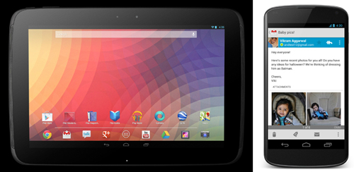 구글은 29일(미국시간) 공식 블로그를 통해 최신 운영체제(OS)인 안드로이드 4.2 젤리빈을 탑재한 삼성전자의 10.1인치 태블릿PC ‘넥서스10’과 LG전자의 4인치대 스마트폰 ‘넥서스4’ 등 2대의 레퍼런스 제품을 공개했다. 레퍼런스 제품은 다른 제품을 개발할 때 기준이 되는 일종의 표준제품이다. 구글이 직접 판매에 나서고 최신 OS가 가장 빨리 적용돼 기업의 인지도를 높이는 효과가 크다. 애플의 iOS와 구글의 안드로이드가 운영체제 시장을 놓고 치열한 싸움을 벌이고 있는 가운데, 삼성전자와 LG전자는 안드로이드 진영의 대표주자로 나서며 시장 점유율을 보다 높일 수 있는 계기를 마련하게 됐다.