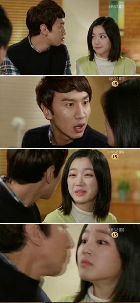 31일 방송된 KBS 2TV 수목드라마 ‘세상 어디에도 없는 착한남자’ 15회에서는 극중 재길(이광수 분)과 초코(이유비)가 재식(양익준 분) 때문에 첫키스를 하는 모습이 전파를 탔다.