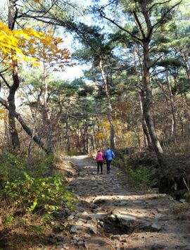 유난히 맑은 날 초겨울 산행은 더할 나위 없이 상쾌한 기분을 안겨준다. 주능선까지는 울창한 송림이고, 추위를 힘들게 이겨내고 있는 색바랜 단풍이 뜨문뜨문 눈에 띈다.