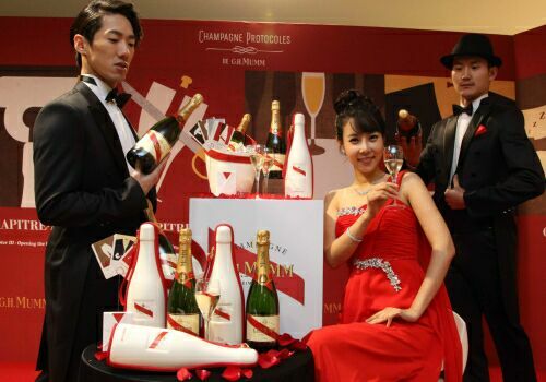 페르노리카코리아가 11일 오전 서울 신세계백화점 본점에서 샴페인 '멈 스노우 백'을 선보이고 있다.