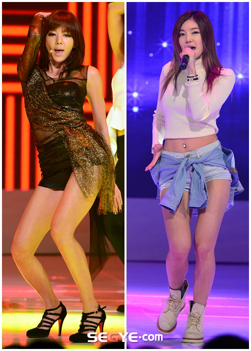 상반신을 시스루룩으로 처리한 의상을 선보인 손담비는 팔과 어깨, 허리 라인을 은근히 드러냈다. 또한 초미니 하의 아래로 늘씬한 각선미를 노출해 팬들의 시선을 사로잡았다.