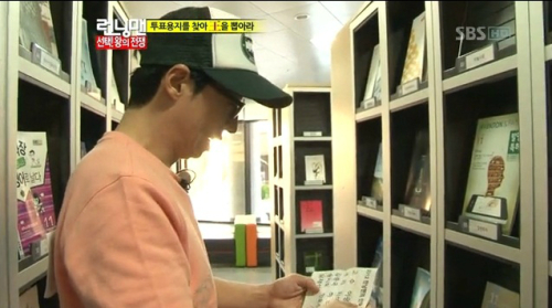 | 유재석 도서관 매너(사진:SBS `일요일이 좋다-런닝맨` 방송 캡처) |