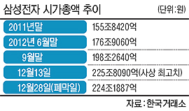 증시 침체 속에서 빛난 것은 단연 삼성전자였다. 삼성전자는 연말 박스권 장세 속에서도 주당 150만원선을 돌파해 12월13일 153만3000원의 사상 최고가를 기록했다.