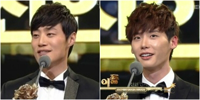 31일 서울 여의도 KBS홀에서 열린 ‘2012 KBS 연기대상’ 인기상 시상식에서 두 사람은 남자 부문 신인연기상을 공동수상했다.