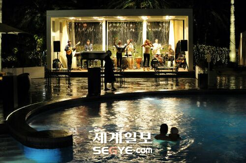 | 제주신라호텔에서는 한겨울 밤에 라틴음악을 들으며 온수 수영장에서 물놀이를 즐길 수 있다. |