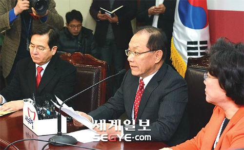 | 새누리당 황우여 대표(가운데)가 3일 오전 서울 여의도 당사에서 열린 최고위원회의에서 모두 발언을 하고 있다. 김범준 기자 |