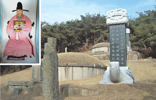 | 좌정승공파 정수충의 묘와 영정(작은 사진). |