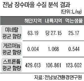 전남도보건환경연구원 관계자는 “이번에 과학적인 수질 분석을 통해 도내 장수마을의 먹는 물 수질의 우수성이 입증됐다”고 밝혔다.