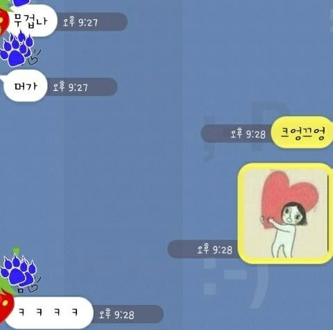 최근 온라인 커뮤니티에는 ‘무거워 애교 스킬’이란 제목으로 스마트폰 메신저 대화 내용을 캡처된 사진이 올라왔다. 발신자가 “너무 무거워서 힘들다”고 말하자 메시지를 받은 사람은 “뭐가?”라고 묻는다. 그러자 커다란 하트를 짊어진 모습의 이모티콘을 보내는 귀여운 애교를 보여줬다.