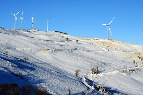 | 태백에서 만항재로 올라가는 길에서 바라본 매봉산의 풍력발전단지. |