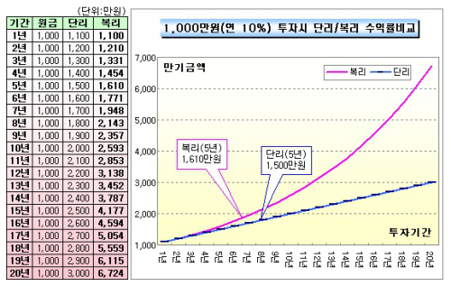 일찍이 천재물리학자 아인슈타인은 “복리야 말로 우주에서 가장 강력한 힘”이라고 하였고 석유왕 록펠로 또한 “복리는 세계 8번째 불가사의”로 정의할 만큼 복리의 이자계산법은 위력적인 것으로 알려져 있다.